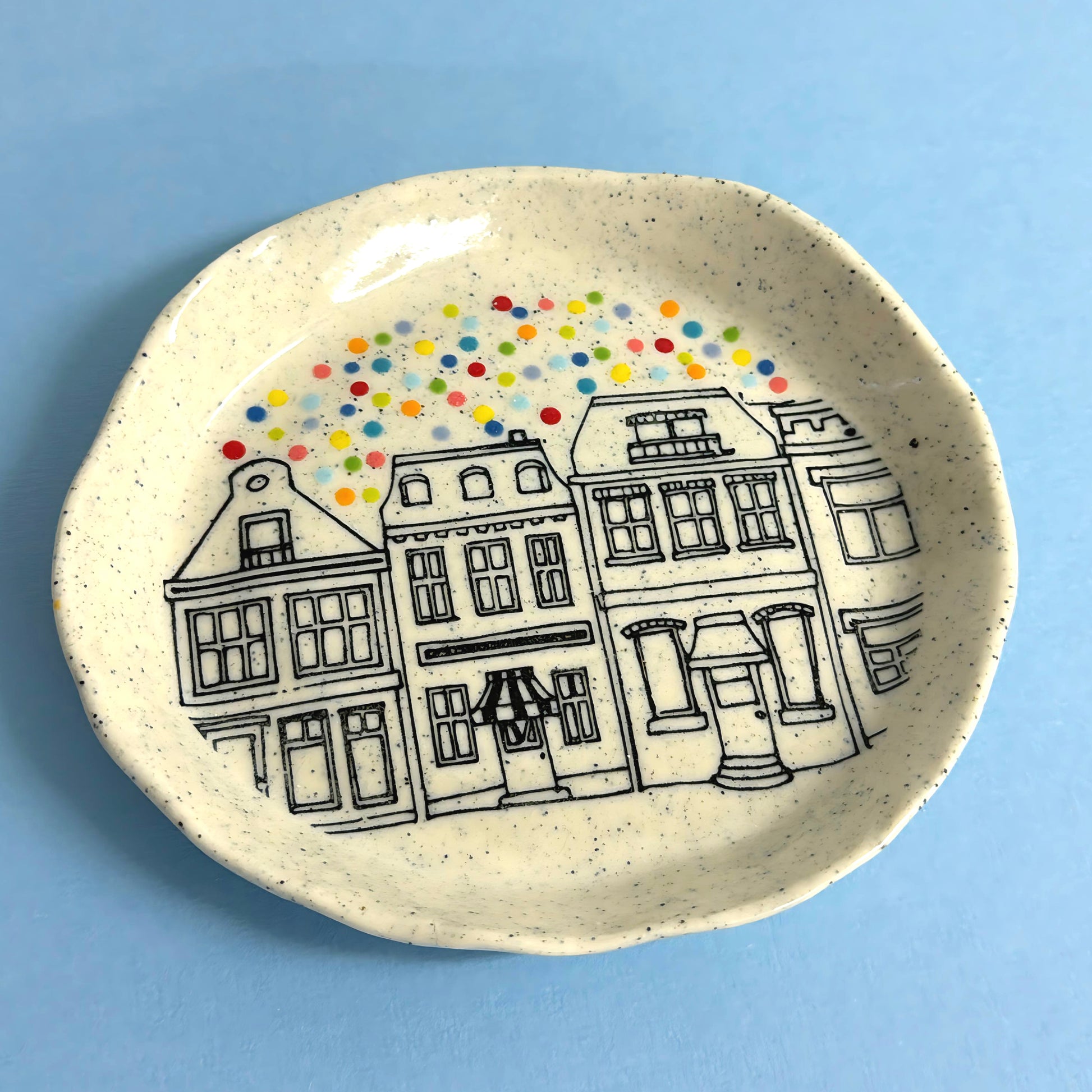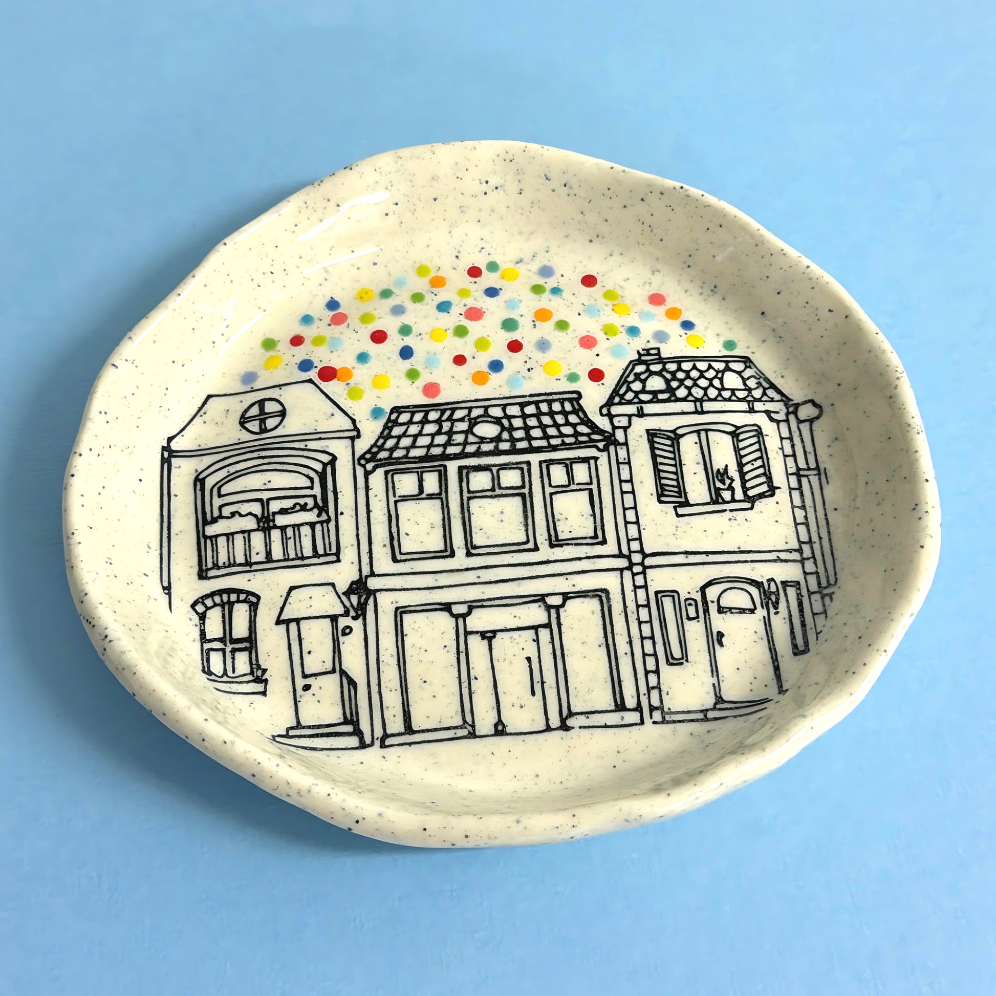 Hello Little RAINBOW CONFETTI DISH : Choose your design : Handpainted Ceramic Dishes by Jo Kealley