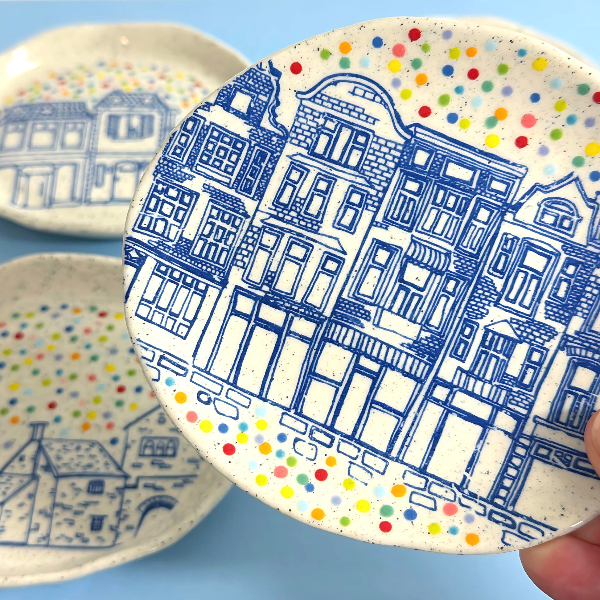 Hello Little RAINBOW CONFETTI DISH : Choose your design : Handpainted Ceramic Dishes by Jo Kealley