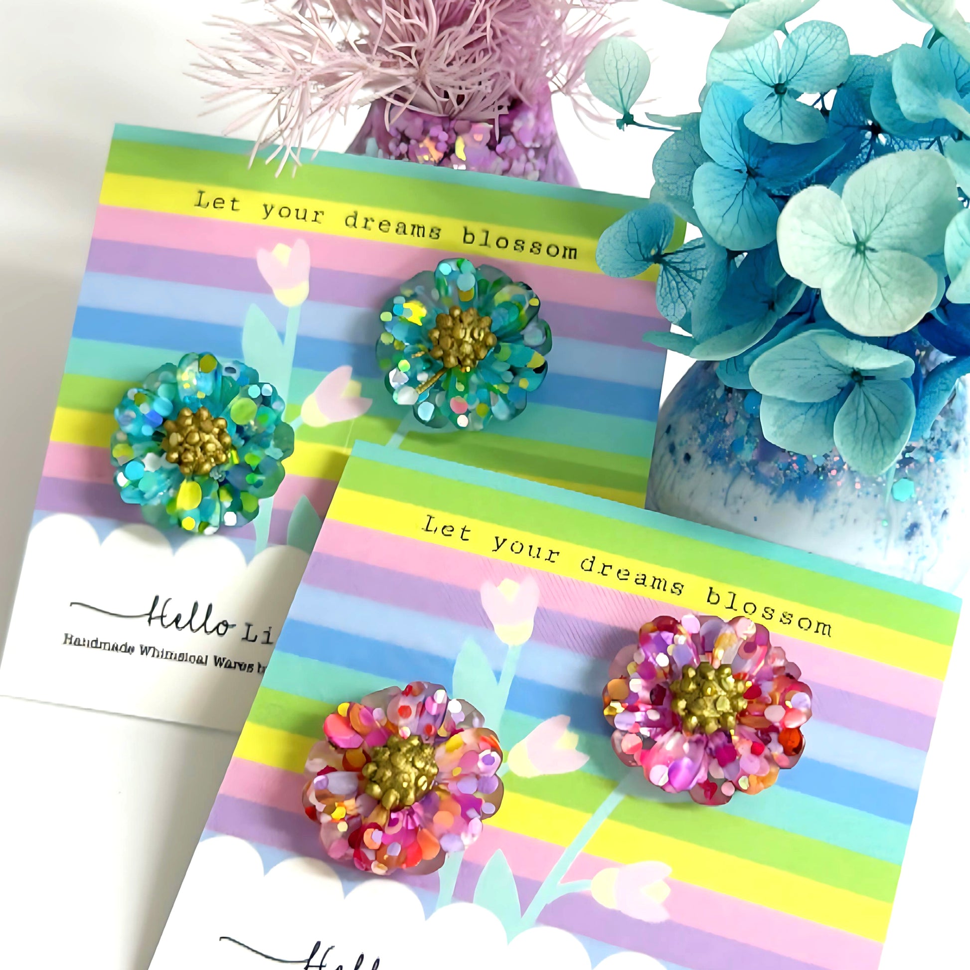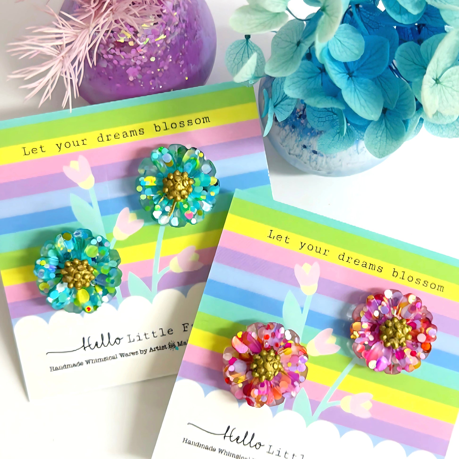 LET YOUR DREAMS BLOSSOM : choose your colour : Handmade Resin STUD Earrings