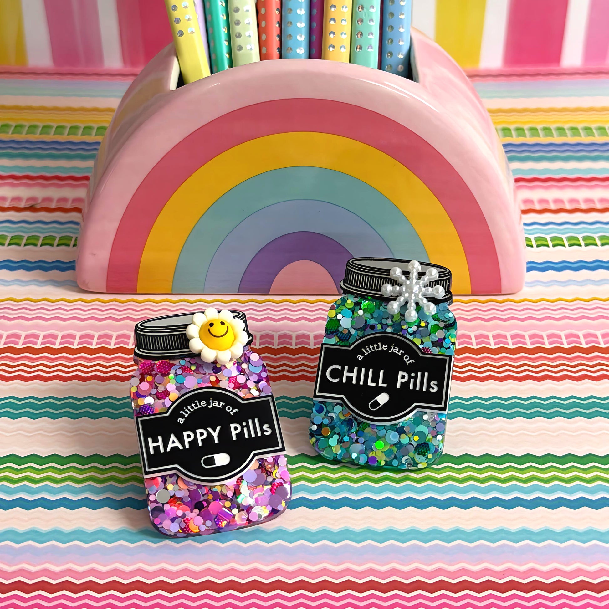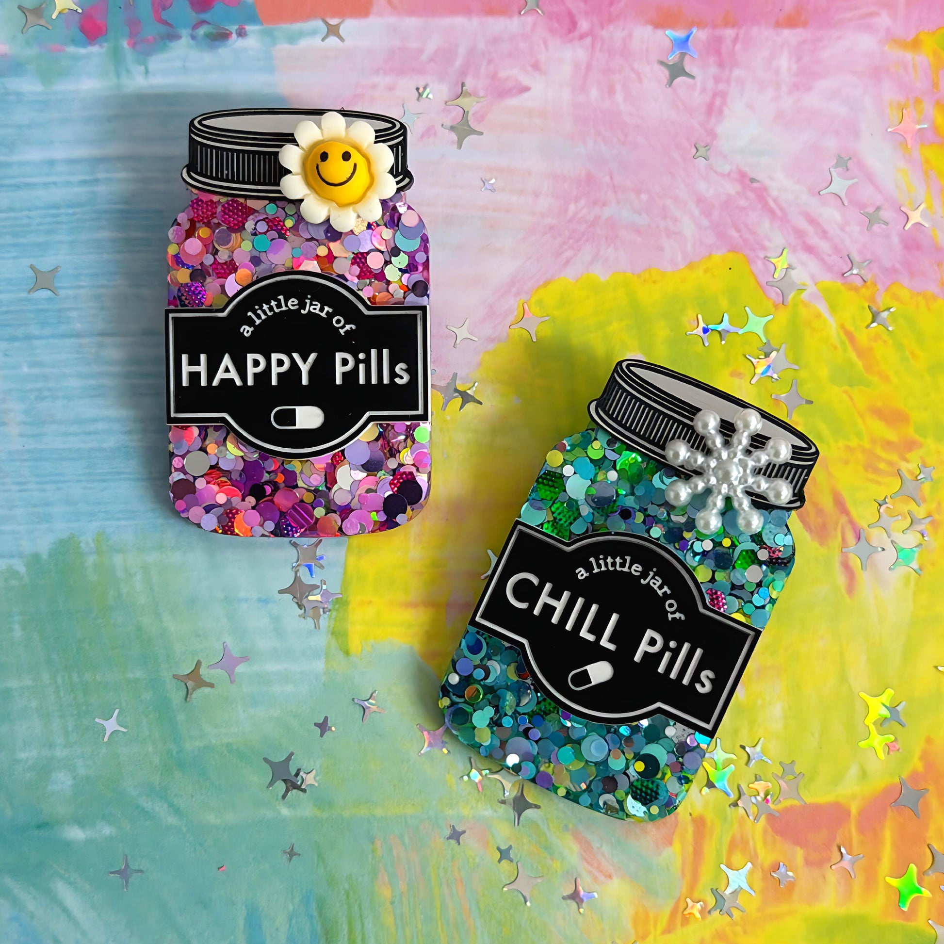 LIMITED EDITION : A LITTLE JAR OF : HAPPY PILLS or CHILL PILLS : Handmade Resin & Acrylic BROOCH