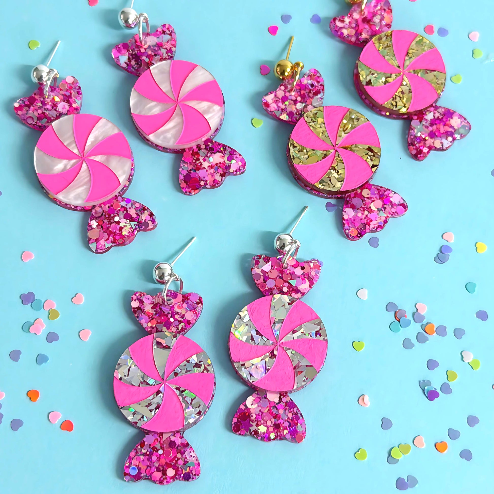 One of a kind : HELLO CHRISTMAS SWEETIE BON BONS : Choose your colour : Handmade Resin & Acrylic DROP Earrings