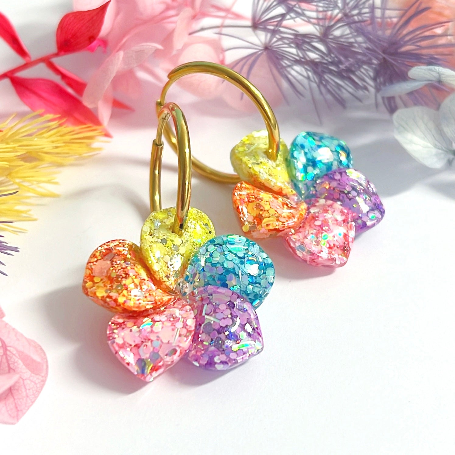 PASTEL RAINBOW FRANGIPANIS: Choose Silver or Gold fittings : Handmade Resin DROP Earrings