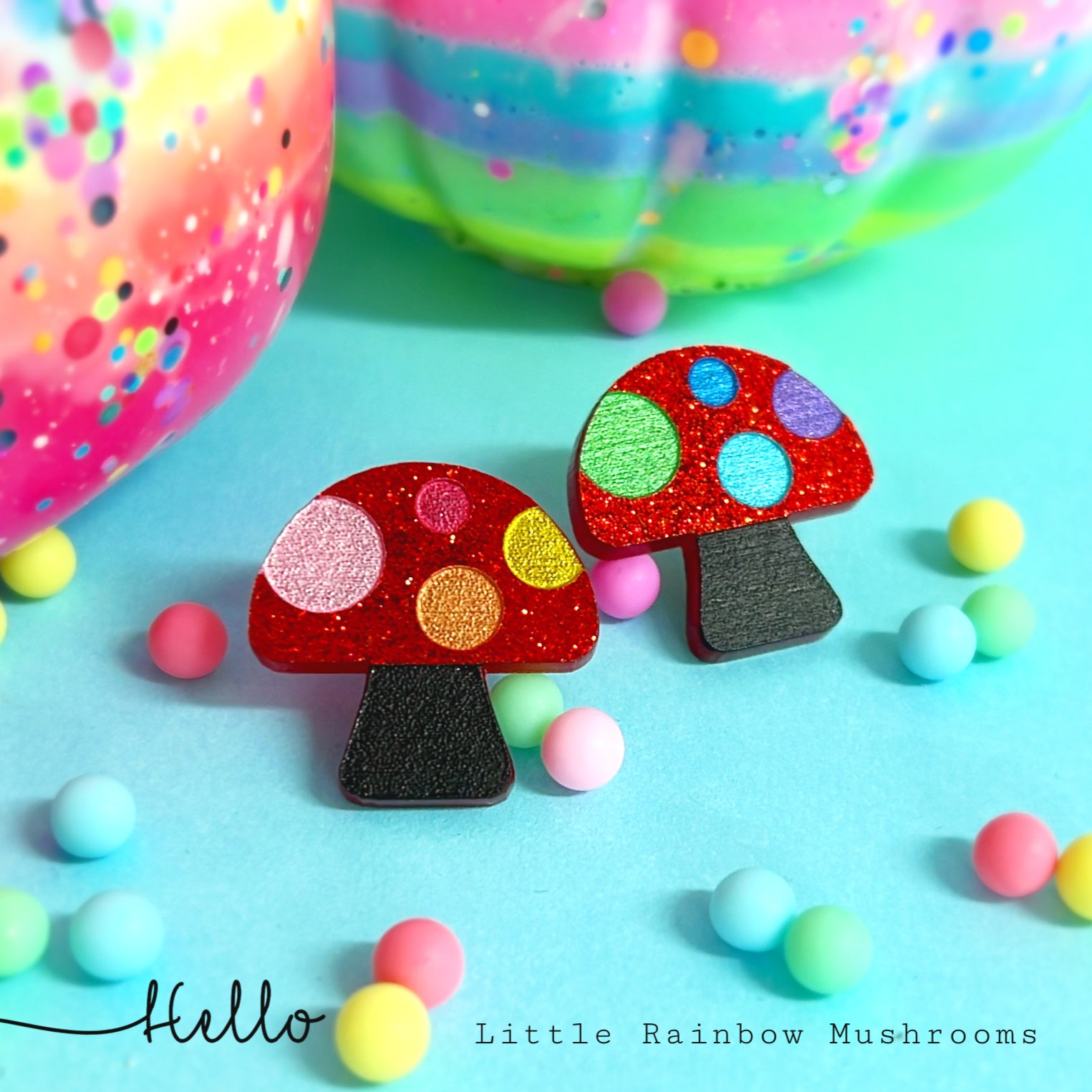 RAINBOW POLKA DOT MUSHROOMS : Handmade Acrylic STUD Earrings