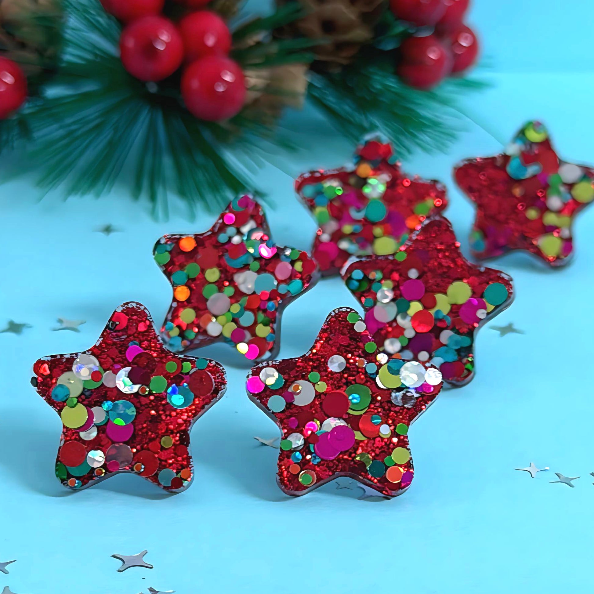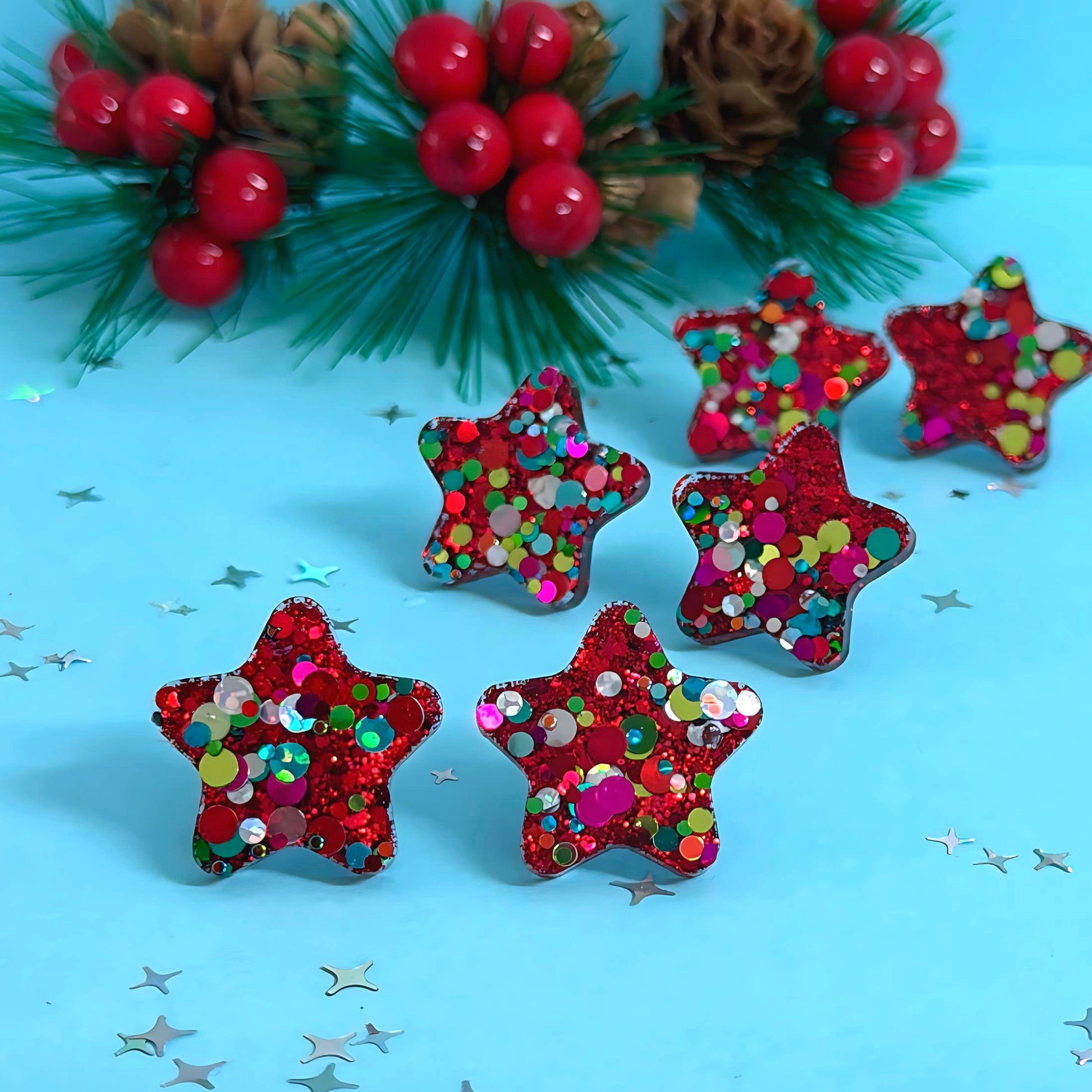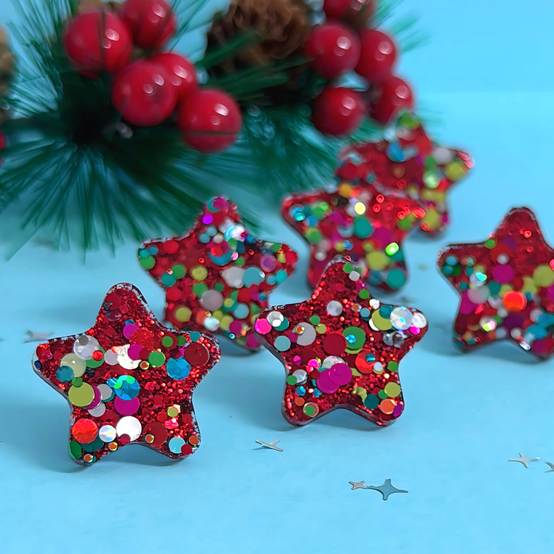 RUBY & EMERALD CONFETTI : FESTIVE STAR : Handmade Resin STUD Earrings