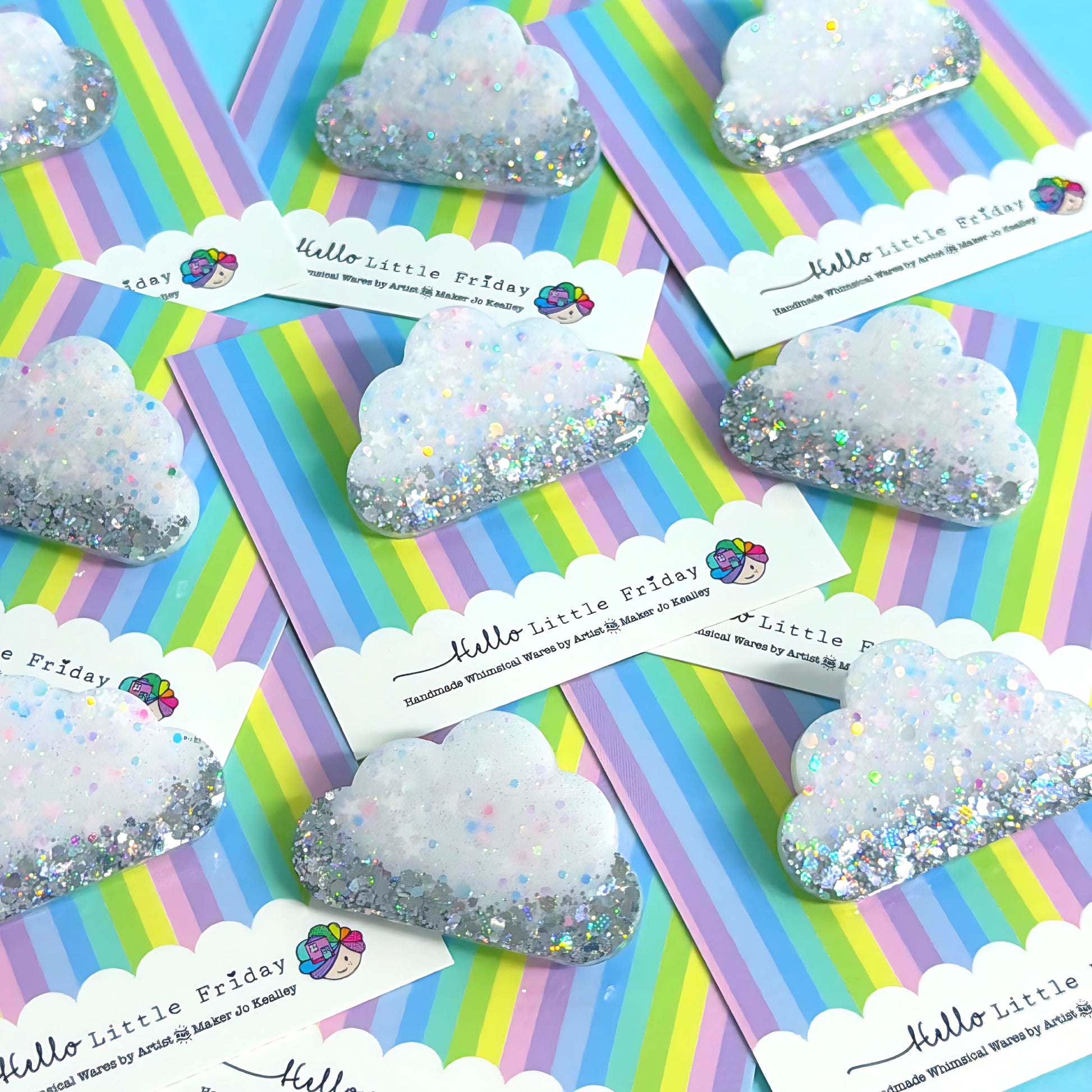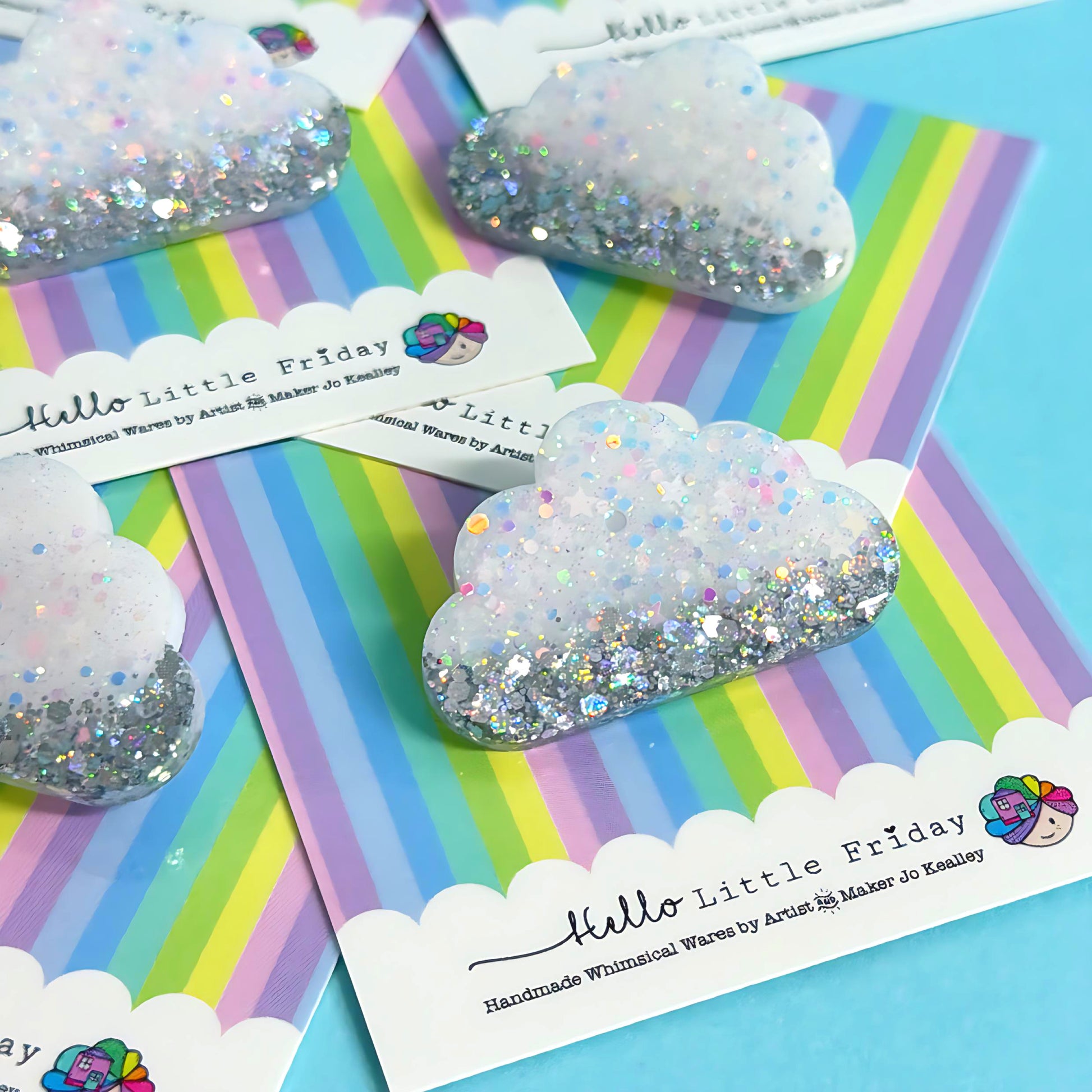 SILVER LININGS : MIDI BROOCH : Winter Silver shimmer : Handmade Resin Brooch