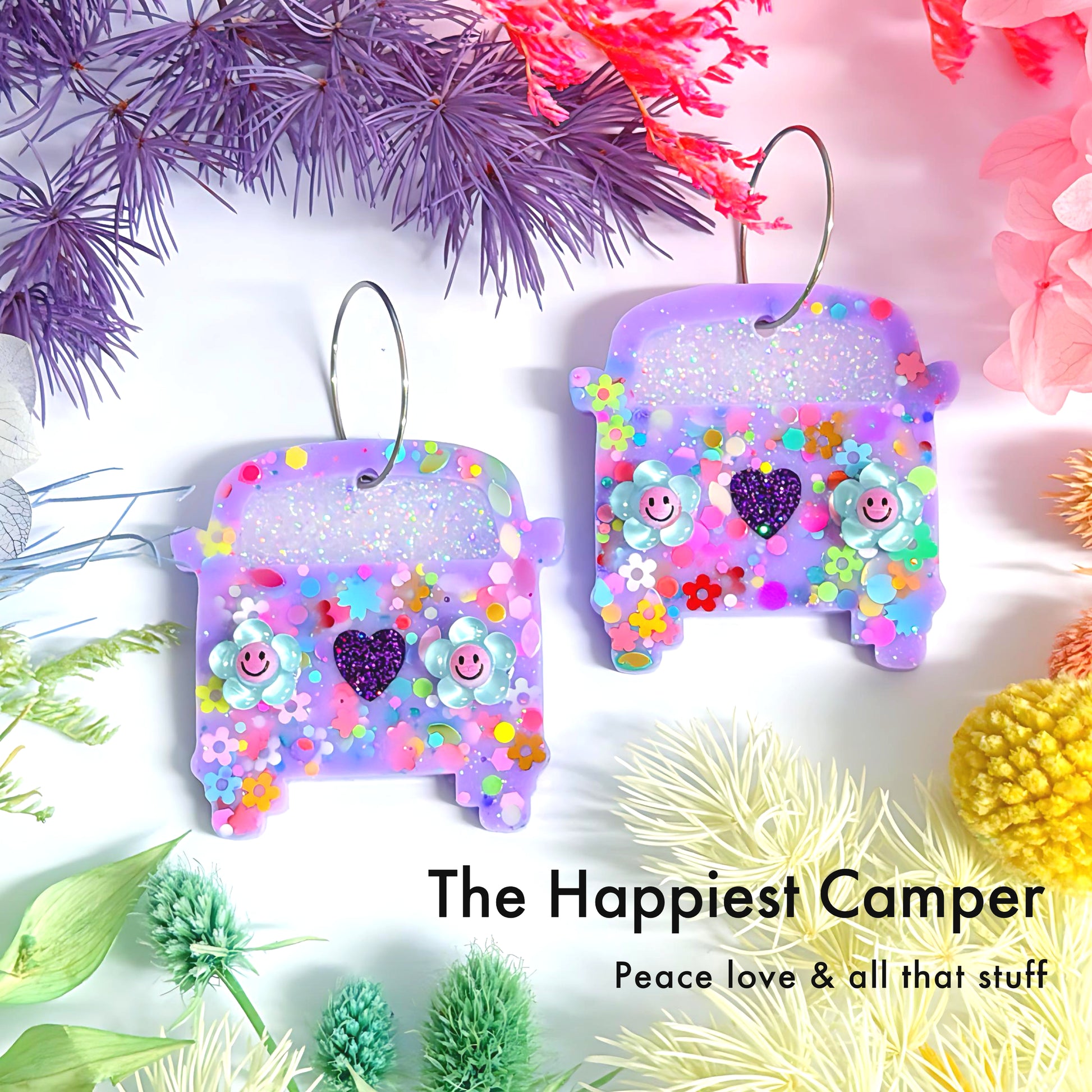 THE HAPPIEST CAMPER : VIOLET DOTTY DAISY : Choose your colour Handmade Resin DROP Earrings