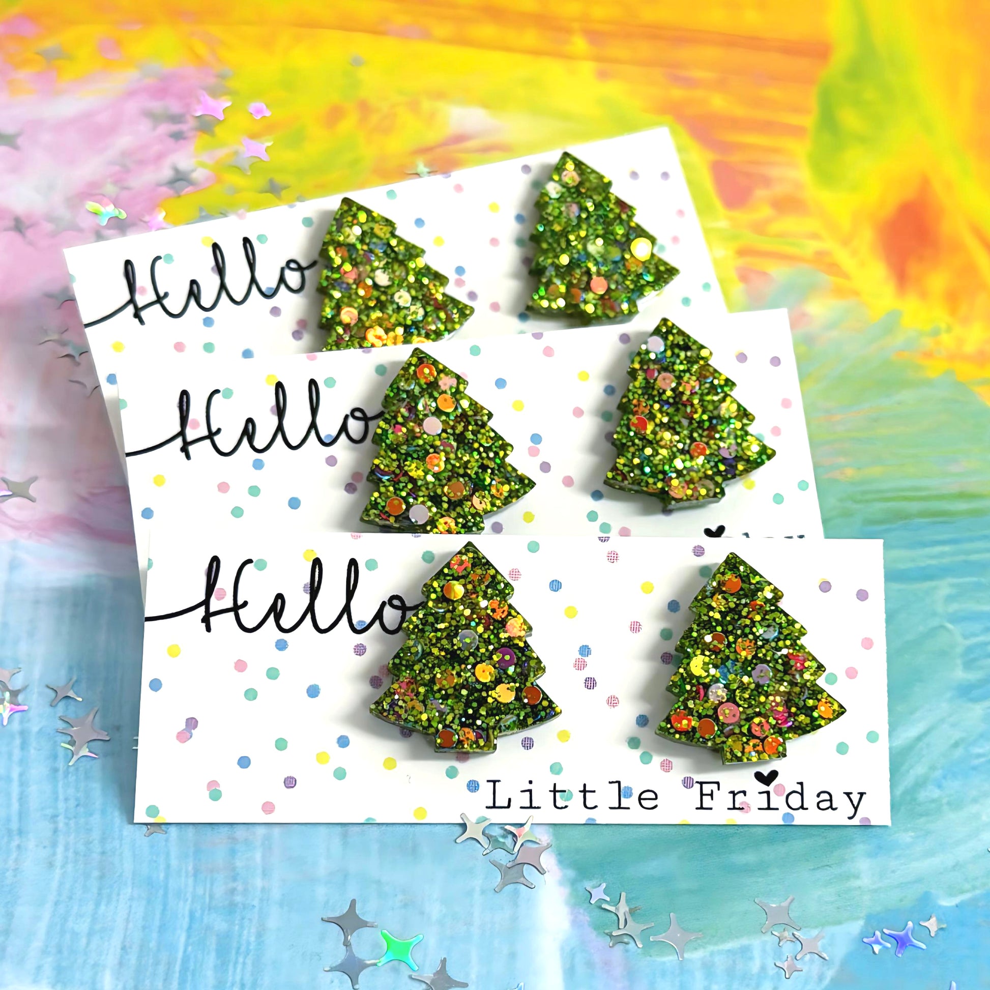 TWINKLING LIGHTS CHRISTMAS TREES : Handmade Resin STUD Earrings