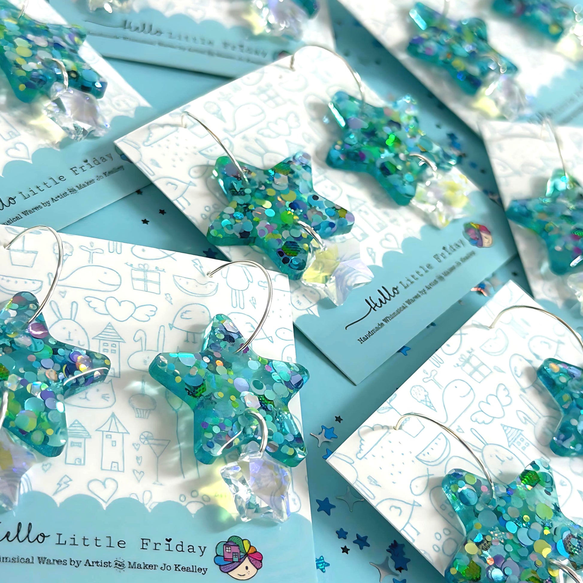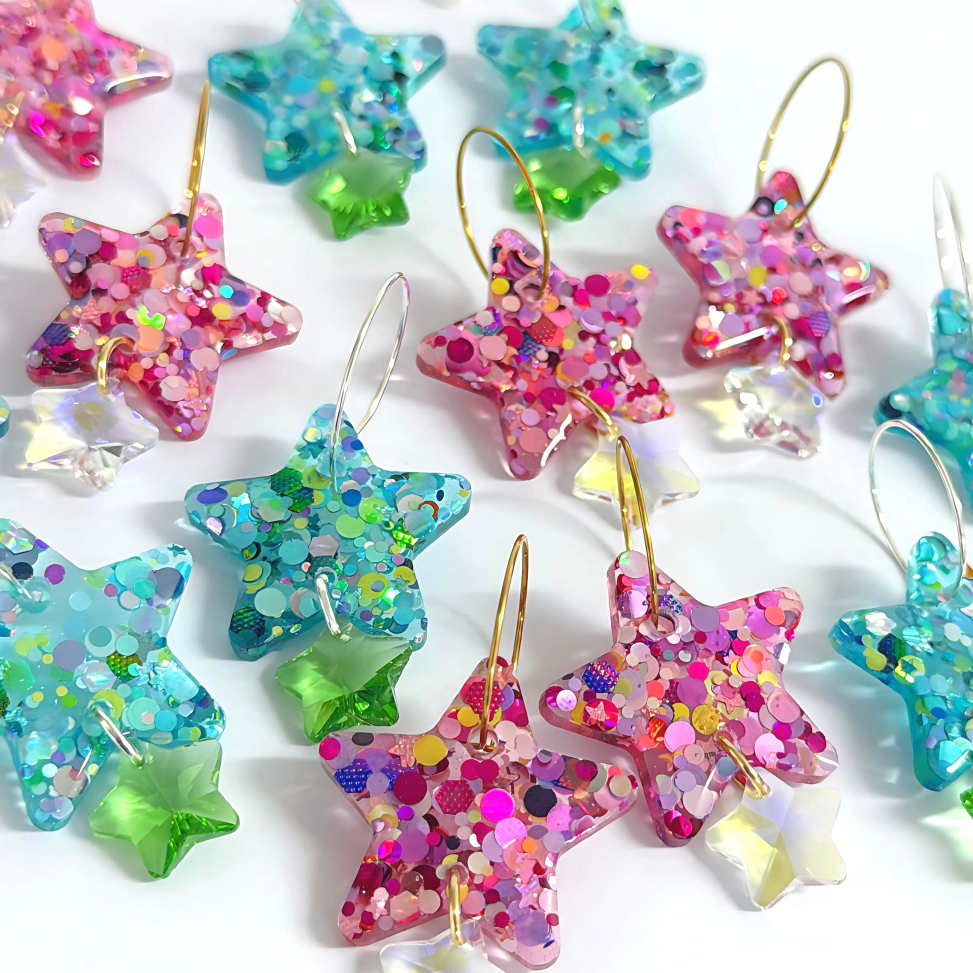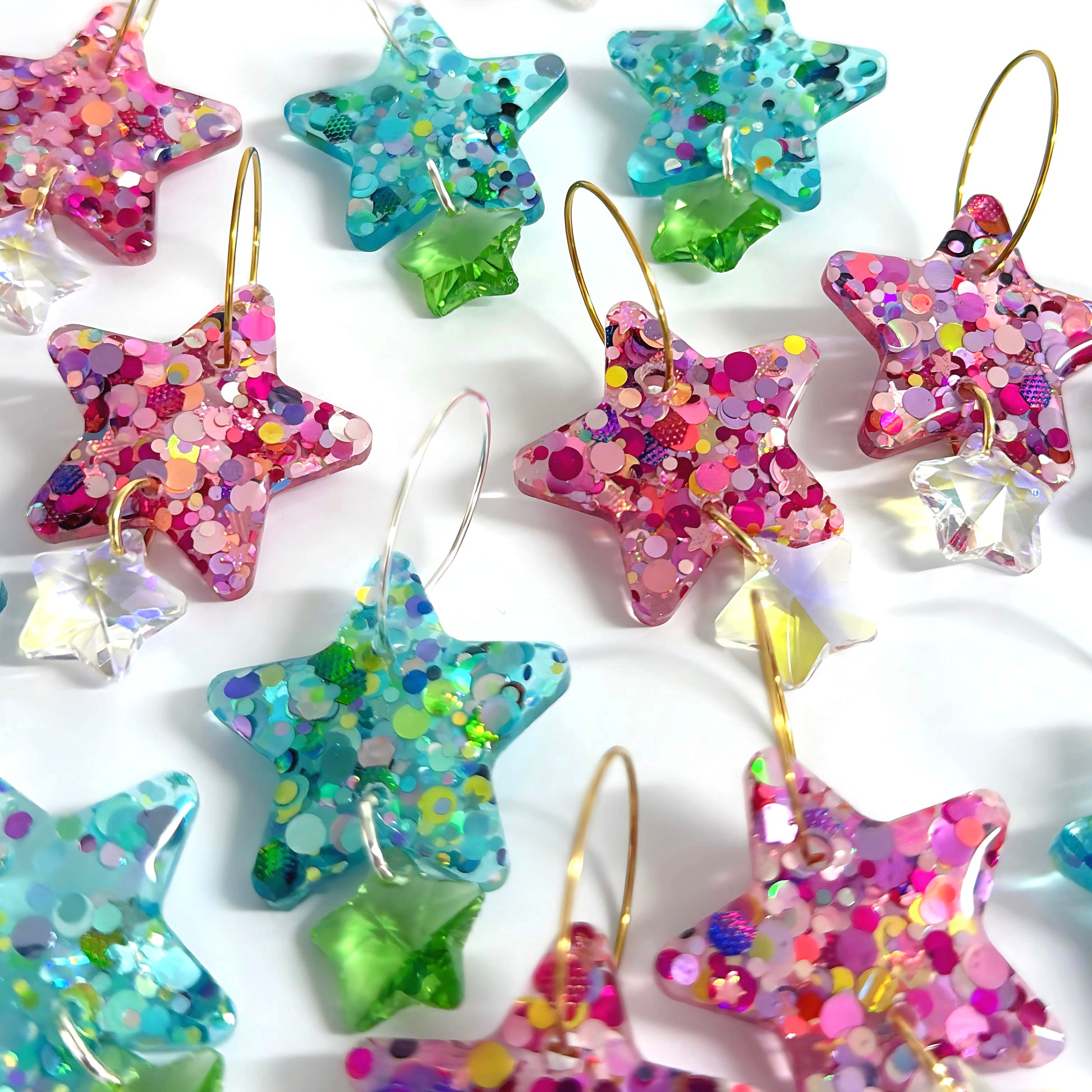 TWINKLING LIGHTS STARS with Swarovski Crystal drops : Choose your colour : Handmade Resin DROP Earrings