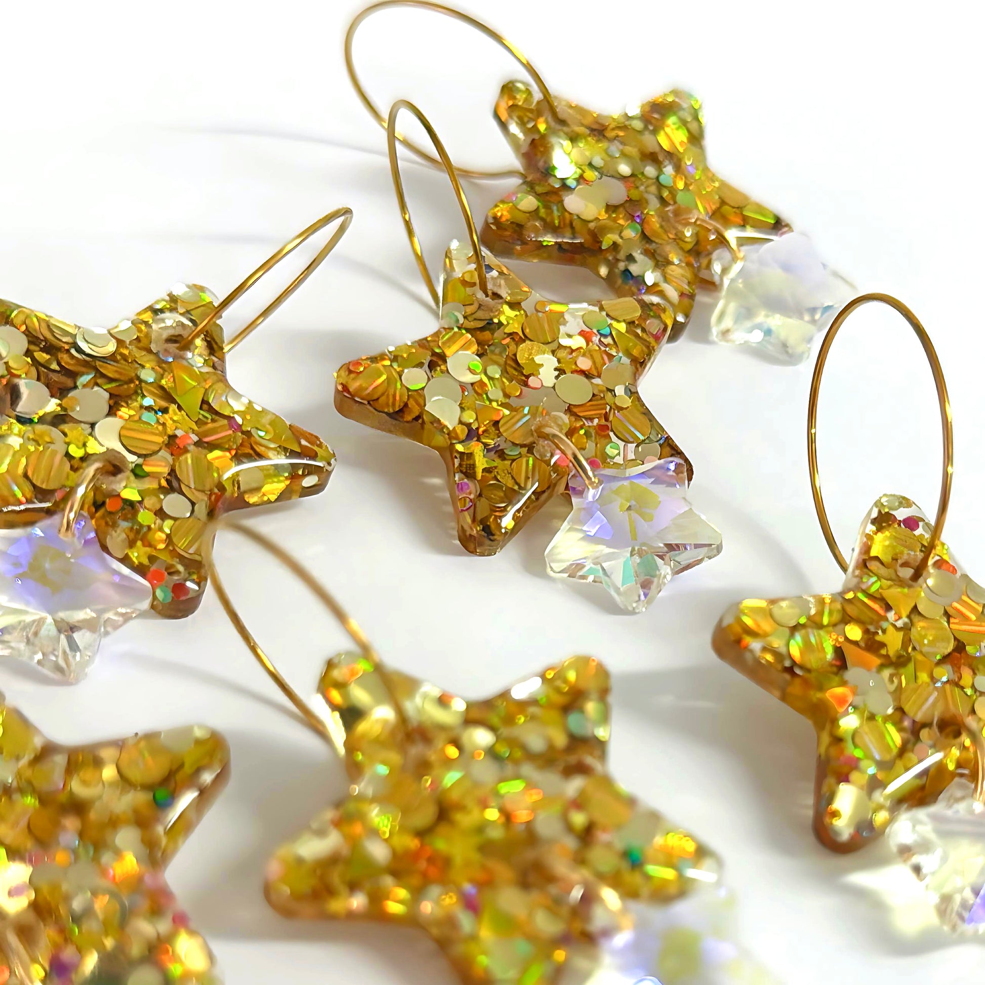 TWINKLING LIGHTS STARS with Swarovski Crystal drops : Handmade Resin DROP Earrings